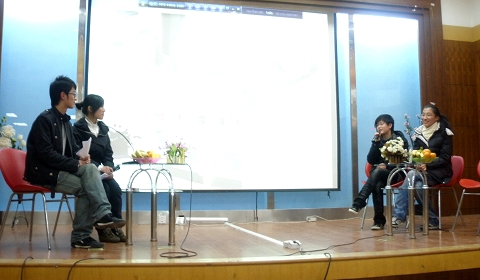 这是一场温馨的交流会,从主持人轻柔的声音、亲切的笑容里,从几位嘉宾悲喜交加的情感里,在场的同学都深深地体会到了国际贸易与外国语分院第一届第二任团学干部在这一年里的酸甜苦辣。与会同学用热烈的掌声对他们在这一年里所做的努力进行了高度的肯定和赞扬,他们真诚待人、团结一致、“牛”一样兢兢业业的精神更是值得在座的所有同学学习,值得我们把这些精神财富一届届的传承和发扬下去。