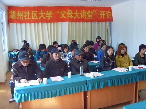 3月15日,由湖州社区大学、湖州市社会科学界联合会、湖州日报联办的“父母大讲堂”大型公益讲座咨询活动在湖东社区举行,湖东社区的居民认真听取了此次讲座。