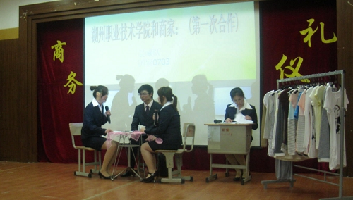 4月21日晚6:30,国际贸易与外国语分院在一号楼三号报告厅隆重举行了以 “礼仪文化、梦想人生、文明校园、和谐社会”为主题的第一届商务礼仪文化大赛决赛。