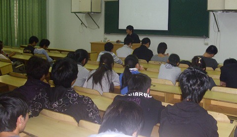 本次招聘会招聘方为湖州第一家网络游戏公司——湖州融雪网络。沈经理向在坐的大二大三学生描述了网络游戏的前景,并详细向大家介绍了国家对网游产业的政策法规以及湖州市政府对该公司的支持力度,并表示公司急需熟悉3Dmax、maya软件操作以及原画人才。