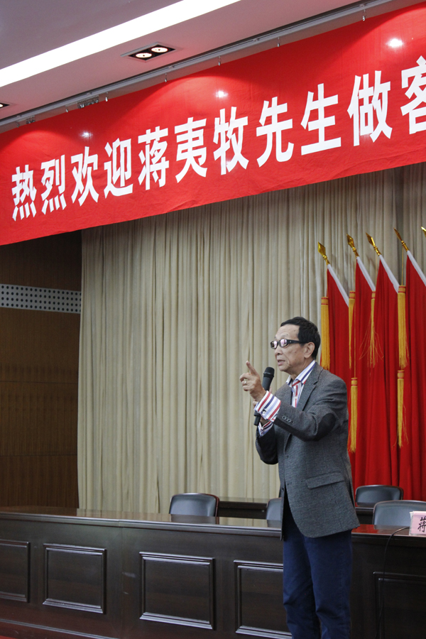 党委副书记丁根林对蒋夷牧先生的到来表示了热烈的欢迎,并简要的概括说明了我校在精神文明建设方面取得的成果。同时,还对“苕溪讲坛”系列活动对指导学生为人处世经验与文化知识积累等方面起到的积极作用给予了充分肯定。
