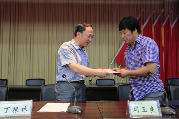 讲座结束后,党委副书记丁根林代表学校为周玉良颁发了“杰出校友论坛风采奖”证书。