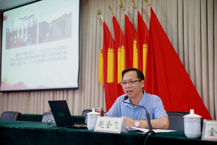 6月30日,学校邀请教育部人文社会科学重点研究基地——嘉兴学院中国共产党革命精神与文化资源研究中心(红船精神研究中心)副主任兼红色文化研究所所长、浙江省“红船精神”宣讲团成员赵金飞教授来我校作“弘扬红船精神,不忘初心使命”专题辅导报告。校党委副书记金毅伟主持报告会。校党政领导班子成员、全体中层干部、党员教师聆听了报告。