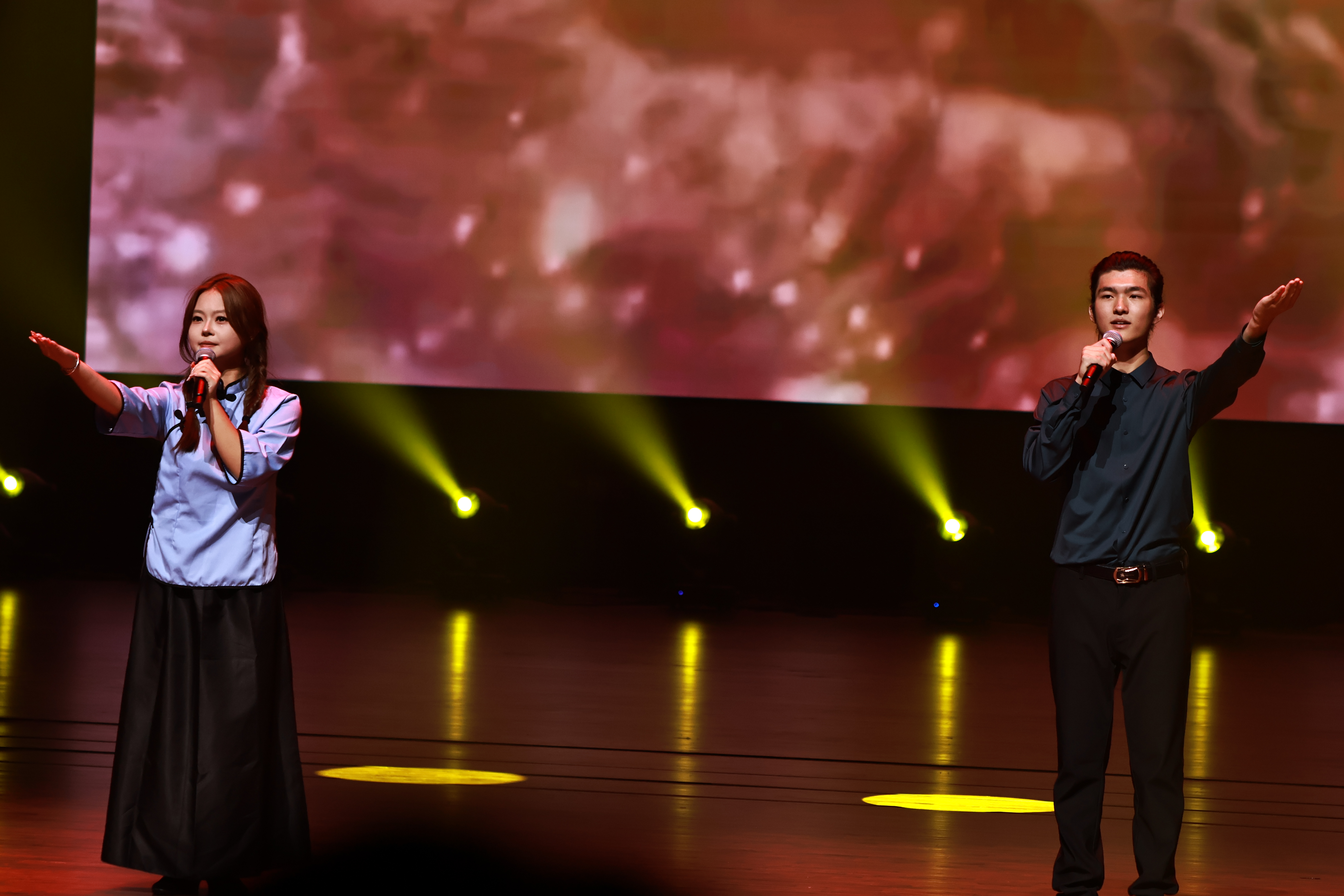 语言类节目温情走心。主持团献上的经典诵读《不朽》,用铿锵嗓音致敬革命先辈;师生朗诵社《青春序章》则以娓娓道来的叙事,为2025级新生写下“请把故事写成长卷”的序章。