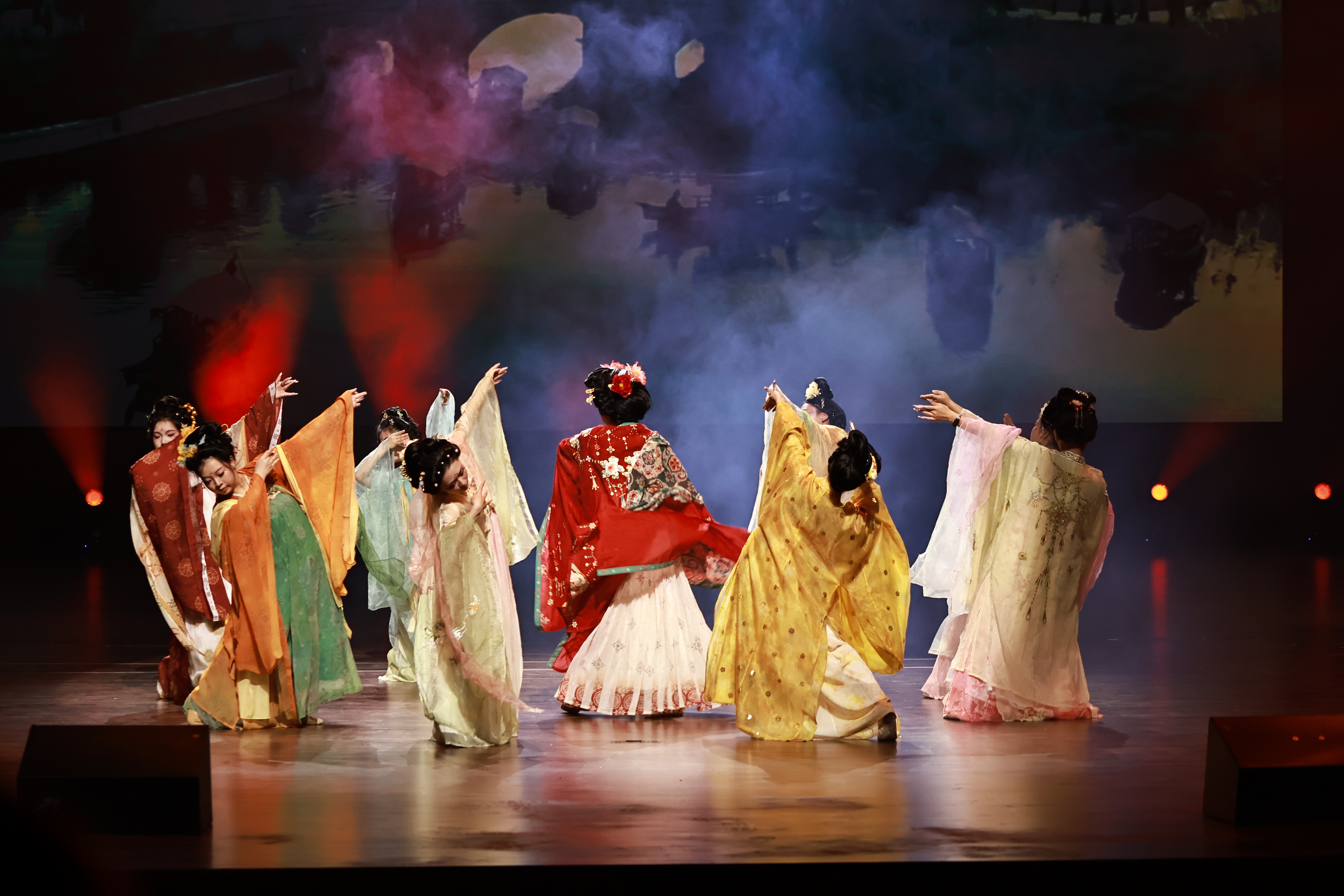 舞蹈板块百花齐放。校艺术团舞蹈团《天浴》借水幕与光影,演绎高原圣洁之美;舞蹈协会《我最红》以都市节拍与利落编舞,彰显“我就是主角”的青春气场;倾梦汉服社《梦回·长安十二时》则带领观众穿越千年,以曼妙水袖与盛世唐音,勾勒十二时辰的锦绣长安。