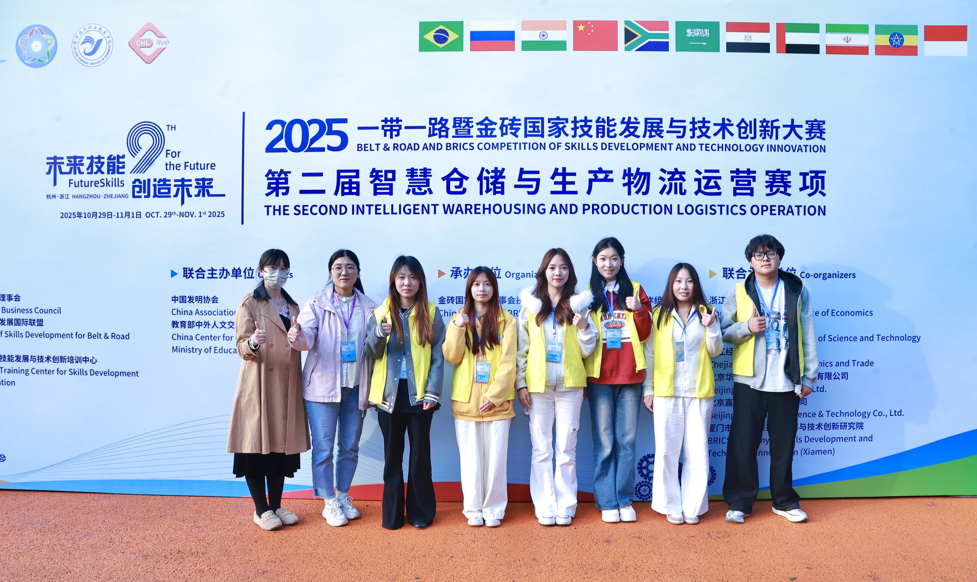 10月29日至10月31日,2025一带一路暨金砖国家技能发展与技术创新大赛之第二届智慧仓储与生产物流运营赛项全国总决赛在浙江经济职业技术学院举行。我校共选派2支队伍参赛,经过理论竞赛、实操竞赛、汇报演示三轮角逐,由经济管理与电商学院现代物流管理专业胡明洋、胡晓娜老师指导的陈思彤、华涵悦、俞梦倩三位同学组成的参赛团队荣获全国总决赛二等奖。由胡晓娜、胡明洋老师指导的魏慧慧、姜嘉莹、徐涵鑫三位同学组成的参赛团队荣获全国总决赛三等奖,我校获评为“优秀组织奖单位”,胡晓娜和胡明洋两位老师获得“优秀指导教师”称号。