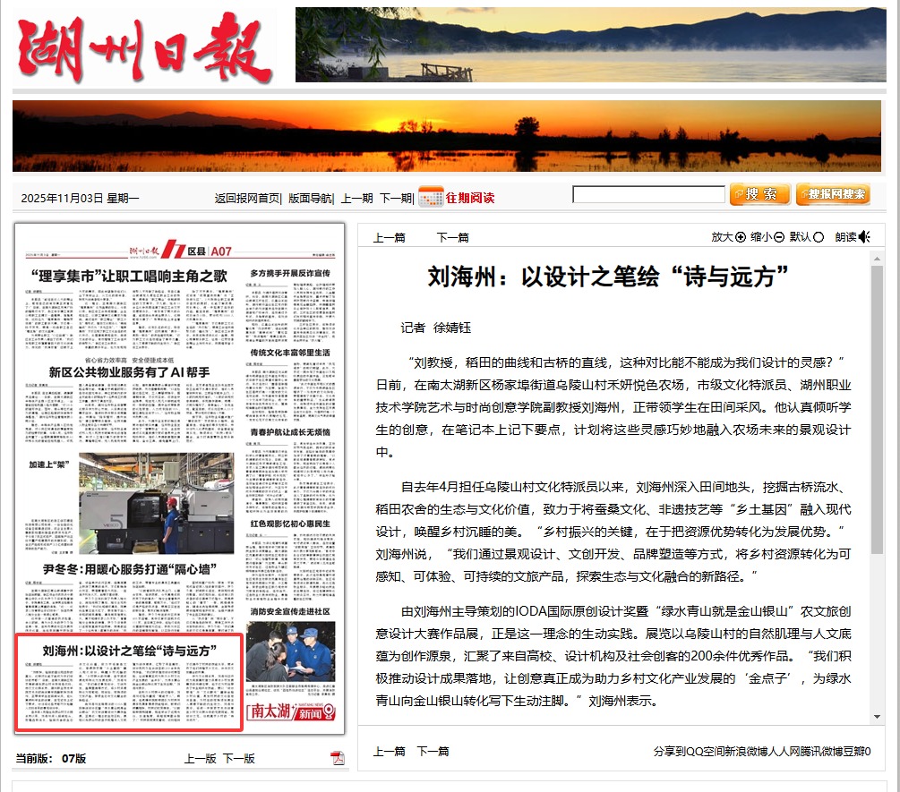 【湖州日报】刘海州:以设计之笔绘“诗与远方”