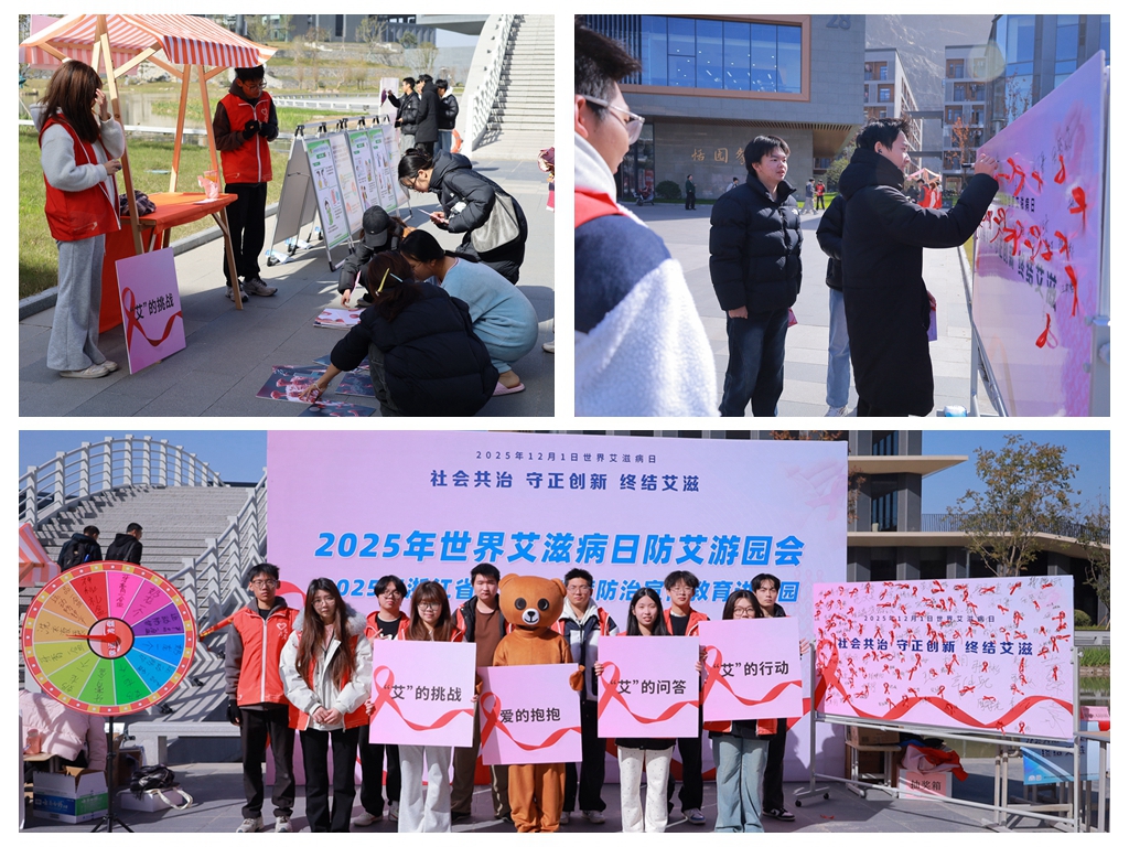 活动以趣味互动融合知识普及的创新形式,吸引了数百名师生踊跃参与,成为校园里一道传递温暖与科学的亮丽风景线。本次游园会打破了传统防艾宣传的刻板模式,精心设计“爱的抱抱”“艾的挑战”“艾的问答”“艾的行动”四大核心环节,将科学知识与互动体验深度结合,让同学们在轻松愉悦的氛围中筑牢健康防线。在各主办单位的专业支持下,活动既保证了知识传播的权威性,又兼顾了青年群体的参与特点。